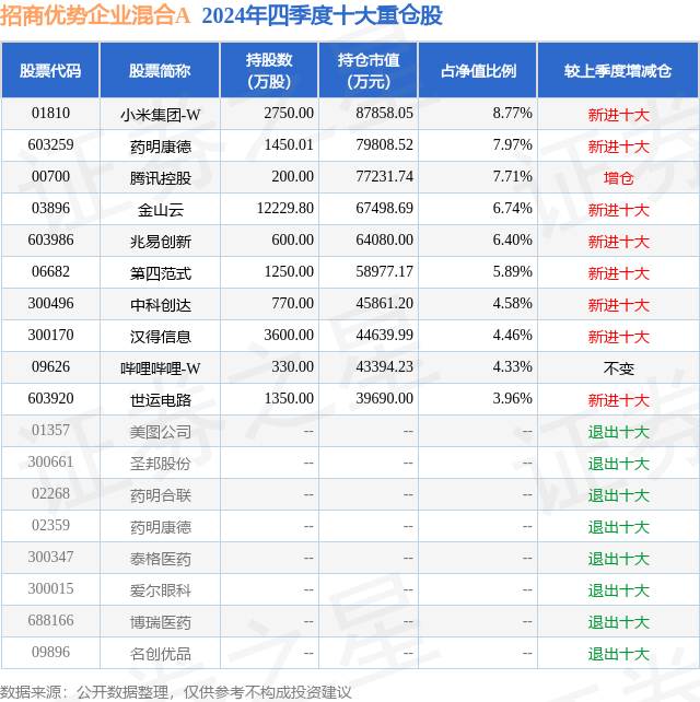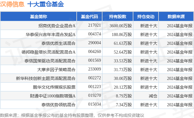 根据2024基金年报公募基金重仓股数据,重仓该股的公募基金共11家,其中持有数量最多的公募基金为招商优势企业混合A。招商优势企业混合A目前规模为64.25亿元,最新净值5.753(2月12日),较上一交易日上涨2.87%,近一年上涨86.54%。该公募基金现任基金经理为翟相栋。