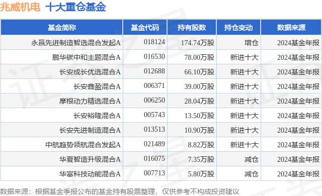 重仓兆威机电的前十大公募基金请见下表: