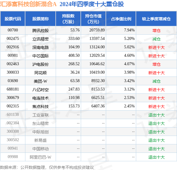 根据2024基金年报公募基金重仓股数据,重仓该股的公募基金共11家,其中持有数量最多的公募基金为汇添富科技创新混合A。汇添富科技创新混合A目前规模为20.48亿元,最新净值2.2953(2月12日),较上一交易日上涨2.93%,近一年上涨52.72%。该公募基金现任基金经理为马翔。马翔在任的基金产品包括:汇添富民营活力混合,管理时间为2016年3月11日至今,期间收益率为75.75%;汇添富创新增长一年定开混合A,管理时间为2020年6月22日至今,期间收益率为4.19%;汇添富策略增长灵活配置混合,管理时间为2020年7月24日至今,期间收益率为0.63%。