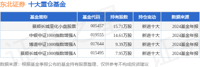 重仓东北证券的公募基金请见下表: