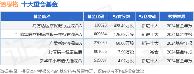 重仓诺思格的公募基金请见下表: