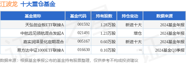 重仓江波龙的公募基金请见下表: