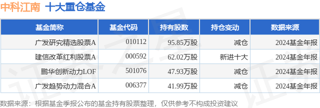 重仓中科江南的公募基金请见下表: