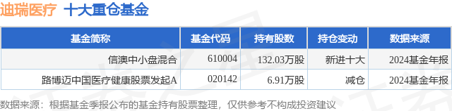 重仓迪瑞医疗的公募基金请见下表: