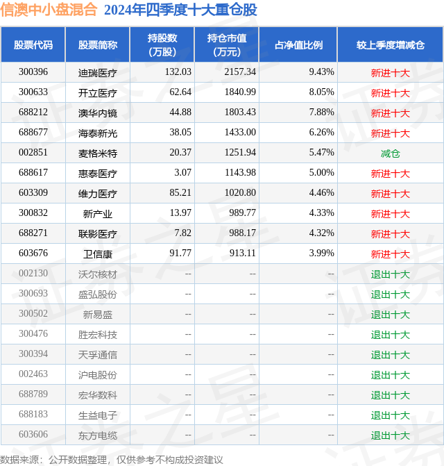 信澳中小盘混合的前十大重仓股如下: