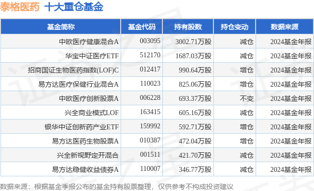 重仓泰格医药的前十大公募基金请见下表: