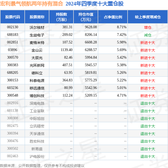 宏利景气领航两年持有混合的前十大重仓股如下: