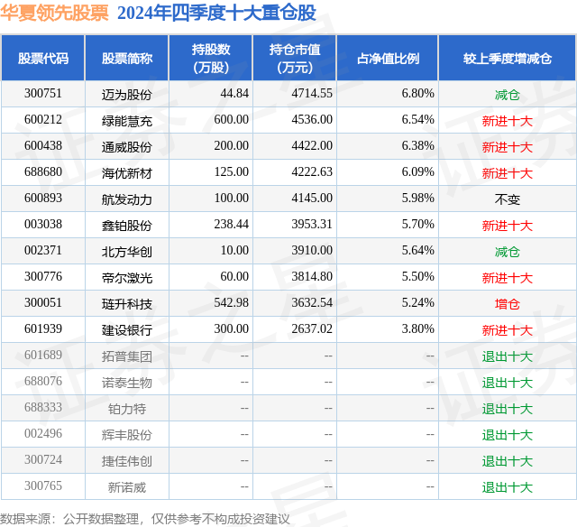 根据2024基金年报公募基金重仓股数据,重仓该股的公募基金共3家,其中持有数量最多的公募基金为华夏领先股票。华夏领先股票目前规模为6.93亿元,最新净值0.47(2月13日),较上一交易日下跌1.88%,近一年下跌3.49%。该公募基金现任基金经理为王晓李。