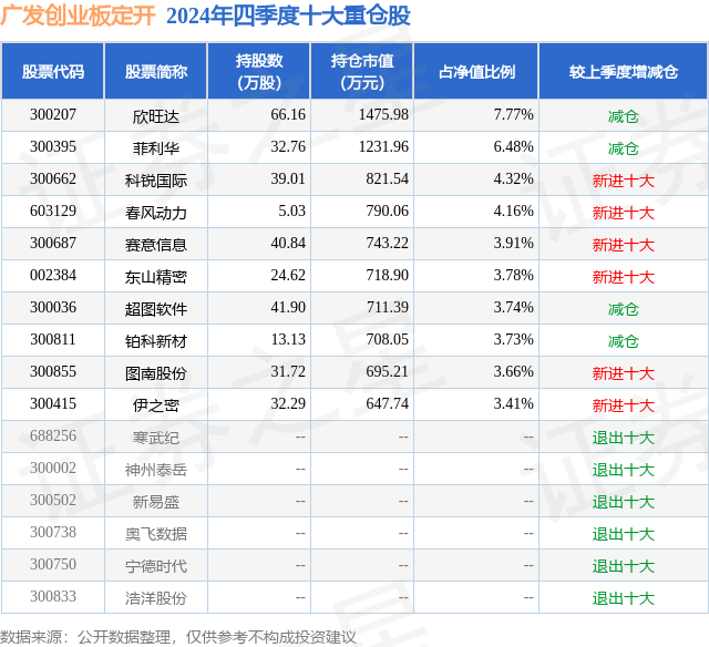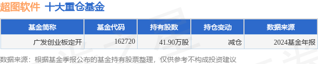 根据2024基金年报公募基金重仓股数据,重仓该股的公募基金共1家,其中持有数量最多的公募基金为广发创业板定开。广发创业板定开目前规模为1.9亿元,最新净值0.8097(2月13日),较上一交易日下跌1.84%,近一年上涨22.02%。该公募基金现任基金经理为李巍。李巍在任的基金产品包括:广发制造业精选混合A,管理时间为2011年9月20日至今,期间收益率为400.94%;广发新兴产业混合A,管理时间为2016年1月29日至今,期间收益率为124.16%;广发科创主题灵活配置混合(LOF),管理时间为2019年6月11日至今,期间收益率为85.29%;