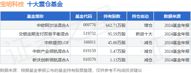 重仓宝明科技的公募基金请见下表: