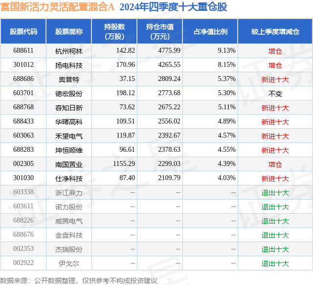 富国新活力灵活配置混合A的前十大重仓股如下: