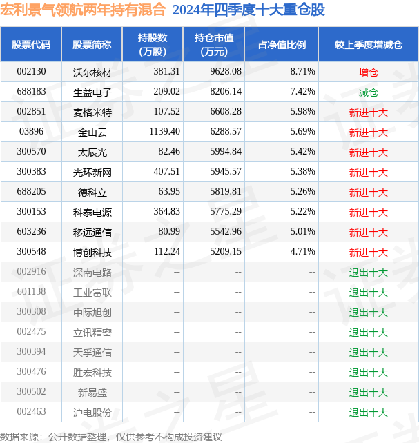 宏利景气领航两年持有混合的前十大重仓股如下: