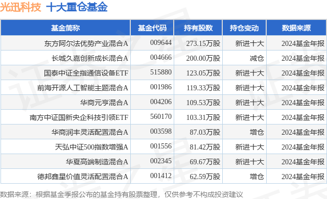 重仓光迅科技的前十大公募基金请见下表: