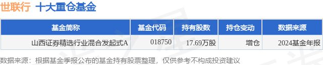 根据2024基金年报公募基金重仓股数据,重仓该股的公募基金共1家,其中持有数量最多的公募基金为山西证券精选行业混合发起式A。山西证券精选行业混合发起式A目前规模为0.11亿元,最新净值1.0917(2月14日),较上一交易日下跌0.38%,近一年上涨11.92%。该公募基金现任基金经理为庄波。