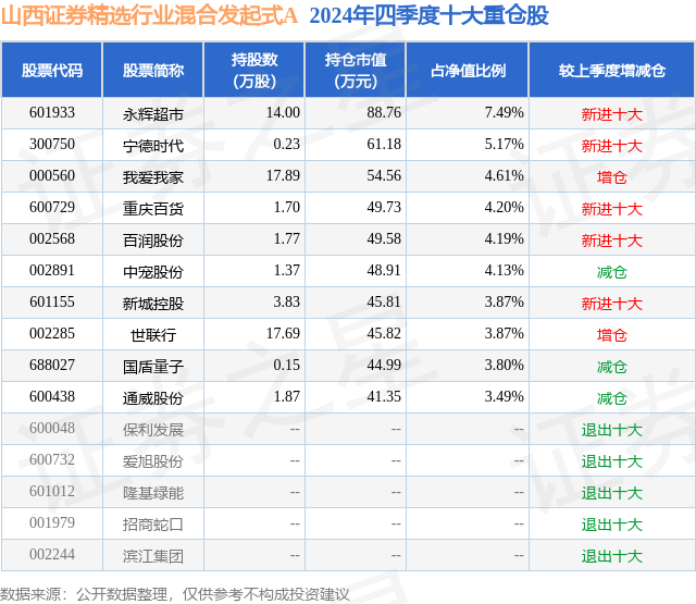 山西证券精选行业混合发起式A的前十大重仓股如下: