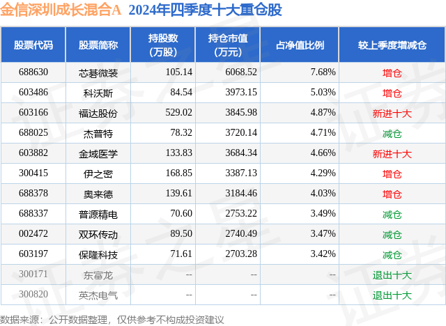 金信深圳成长混合A的前十大重仓股如下: