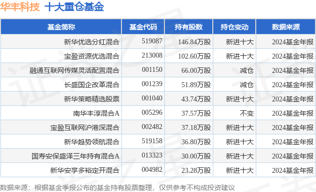 根据2024基金年报公募基金重仓股数据,重仓该股的公募基金共18家,其中持有数量最多的公募基金为新华优选分红混合。新华优选分红混合目前规模为9.36亿元,最新净值0.6342(2月14日),较上一交易日下跌0.75%,近一年上涨29.67%。该公募基金现任基金经理为赵强。赵强在任的基金产品包括:新华策略精选股票,管理时间为2017年5月17日至今,期间收益率为77.73%;新华安享多裕定开混合,管理时间为2022年10月25日至今,期间收益率为-23.1%;新华趋势领航混合,管理时间为2022年10月25日至今,期间收益率为-32.13%。
