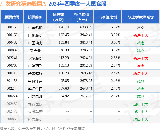 根据2024基金年报公募基金重仓股数据,重仓该股的公募基金共4家,其中持有数量最多的公募基金为广发研究精选股票A。广发研究精选股票A目前规模为9.17亿元,最新净值0.5027(2月17日),较上一交易日上涨0.72%,近一年上涨10.73%。该公募基金现任基金经理为蒋科。蒋科在任的基金产品包括:广发趋势动力混合A,管理时间为2020年4月30日至今,期间收益率为38.89%;广发睿杰精选混合发起式A1,管理时间为2023年11月24日至今,期间收益率为2.91%。