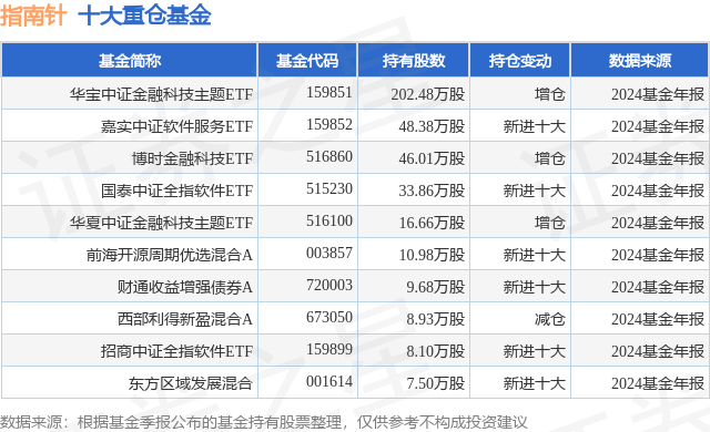 华宝中证金融科技主题ETF的前十大重仓股如下:
