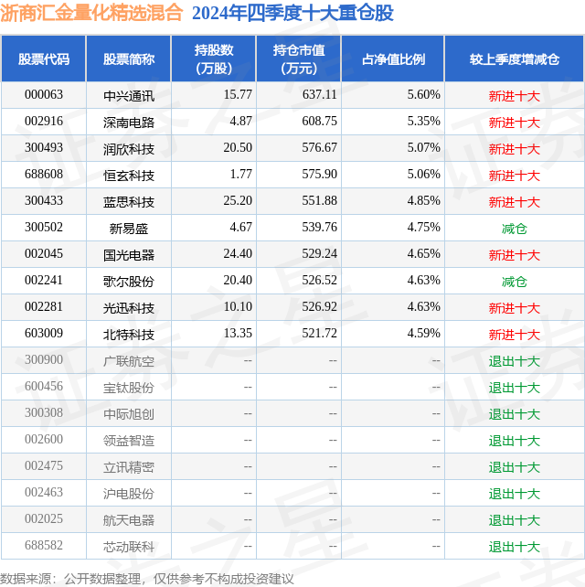 根据2024基金年报公募基金重仓股数据,重仓该股的公募基金共7家,其中持有数量最多的公募基金为浙商汇金量化精选混合。浙商汇金量化精选混合目前规模为1.14亿元,最新净值1.0677(2月17日),较上一交易日上涨3.88%,近一年下跌23.87%。该公募基金现任基金经理为庞雅菁。