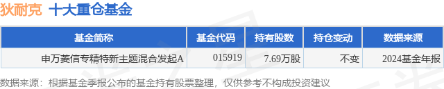 根据2024基金年报公募基金重仓股数据,重仓该股的公募基金共1家,其中持有数量最多的公募基金为申万菱信专精特新主题混合发起A。申万菱信专精特新主题混合发起A目前规模为0.14亿元,最新净值0.8889(2月18日),较上一交易日下跌3.57%,近一年上涨40.78%。该公募基金现任基金经理为梁国柱。梁国柱在任的基金产品包括:申万菱信多策略灵活配置混合A,管理时间为2023年2月1日至今,期间收益率为35.56%;申万菱信数字产业股票型发起式A,管理时间为2023年5月4日至今,期间收益率为15.77%;申万菱信乐道三年持有期混合,管理时间为2023年6月15日至今,期间收益率为12.54%。