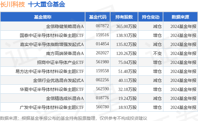 重仓长川科技的前十大公募基金请见下表: