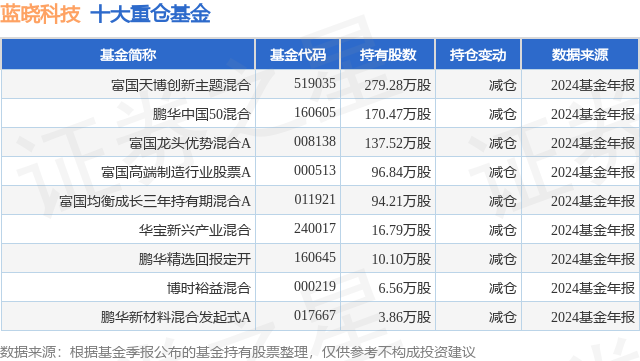 重仓蓝晓科技的公募基金请见下表: