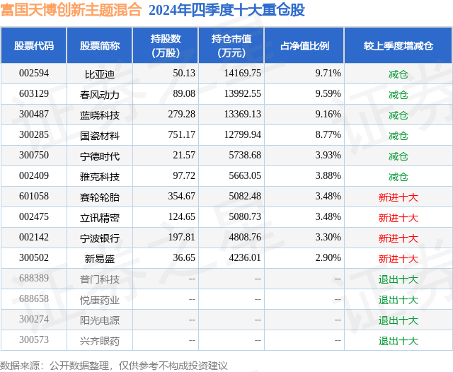富国天博创新主题混合的前十大重仓股如下: