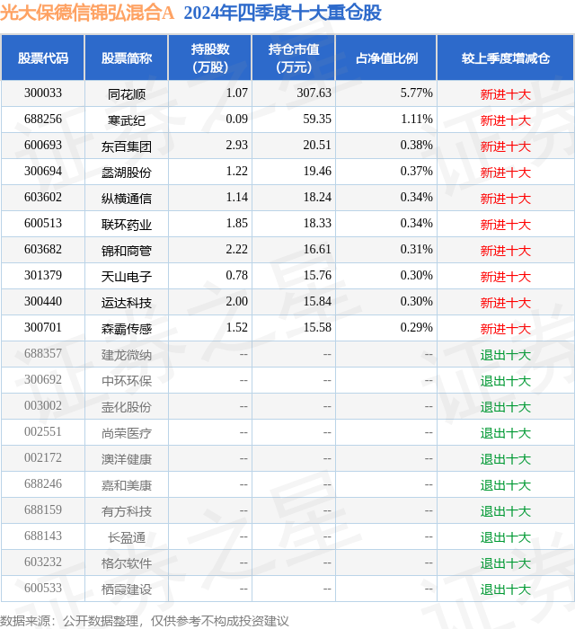 根据2024基金年报公募基金重仓股数据,重仓该股的公募基金共1家,其中持有数量最多的公募基金为光大保德信锦弘混合A。光大保德信锦弘混合A目前规模为0.28亿元,最新净值1.1446(2月18日),较上一交易日下跌0.8%,近一年上涨18.47%。该公募基金现任基金经理为王卫林。王卫林在任的基金产品包括:光大创业板量化优选A,管理时间为2023年8月22日至今,期间收益率为11.4%;光大中证500指数增强A,管理时间为2023年8月22日至今,期间收益率为10.57%;光大保德信量化股票A,管理时间为2023年8月22日至今,期间收益率为-3.25%。