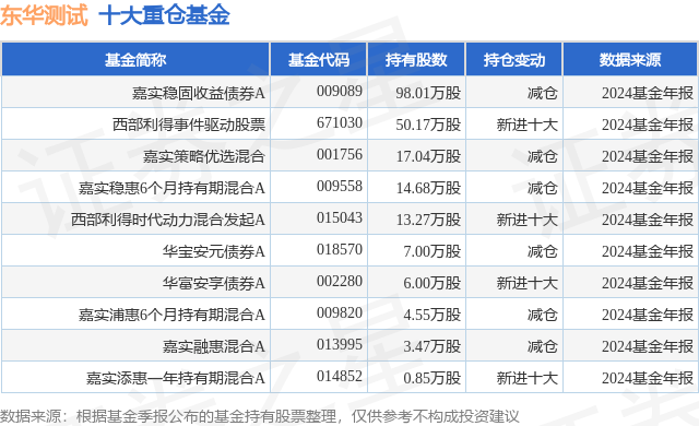 根据2024基金年报公募基金重仓股数据,重仓该股的公募基金共10家,其中持有数量最多的公募基金为嘉实稳固收益债券A。嘉实稳固收益债券A目前规模为26.88亿元,最新净值1.17(2月18日),较上一交易日下跌0.34%,近一年上涨6.11%。该公募基金现任基金经理为胡永青。胡永青在任的基金产品包括:嘉实策略优选混合,管理时间为2016年12月1日至今,期间收益率为70.61%;嘉实浦惠6个月持有期混合A,管理时间为2020年10月14日至今,期间收益率为10.58%;嘉实稳惠6个月持有期混合A,管理时间为2020年11月27日至今,期间收益率为7.67%。