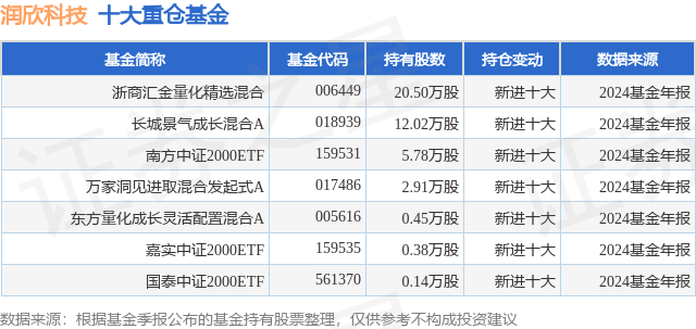 根据2024基金年报公募基金重仓股数据,重仓该股的公募基金共7家,其中持有数量最多的公募基金为浙商汇金量化精选混合。浙商汇金量化精选混合目前规模为1.14亿元,最新净值1.0938(2月19日),较上一交易日上涨5.06%,近一年下跌23.87%。该公募基金现任基金经理为庞雅菁。