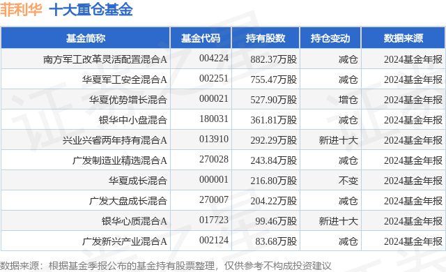 重仓菲利华的前十大公募基金请见下表: