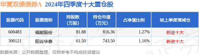根据2024基金年报公募基金重仓股数据,重仓该股的公募基金共3家,其中持有数量最多的公募基金为华夏双债债券A。华夏双债债券A目前规模为3.84亿元,最新净值1.8506(2月19日),较上一交易日上涨1.04%,近一年上涨16.6%。该公募基金现任基金经理为柳万军。柳万军在任的基金产品包括:华夏纯债债券A,管理时间为2017年9月8日至今,期间收益率为34.46%;华夏永康添福混合A,管理时间为2019年7月15日至今,期间收益率为45.49%;华夏鼎清债券A,管理时间为2020年12月3日至今,期间收益率为6.92%。