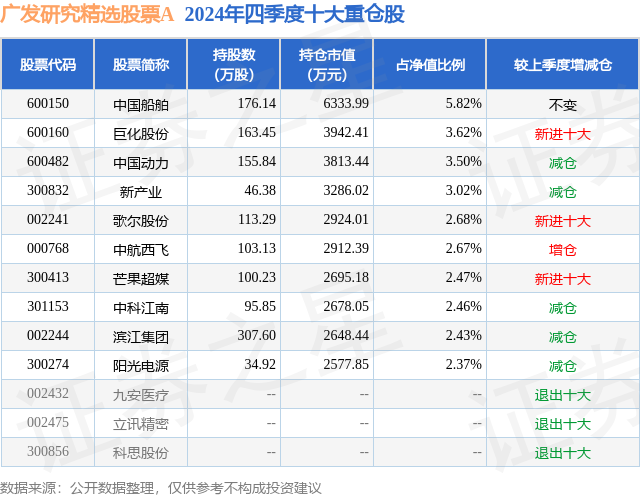 根据2024基金年报公募基金重仓股数据,重仓该股的公募基金共4家,其中持有数量最多的公募基金为广发研究精选股票A。广发研究精选股票A目前规模为9.17亿元,最新净值0.5009(2月20日),较上一交易日上涨0.08%,近一年上涨8.21%。该公募基金现任基金经理为蒋科。蒋科在任的基金产品包括:广发趋势动力混合A,管理时间为2020年4月30日至今,期间收益率为39.96%;广发睿杰精选混合发起式A1,管理时间为2023年11月24日至今,期间收益率为3.5%。
