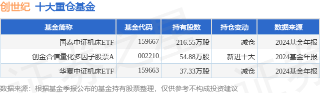 重仓创世纪的公募基金请见下表: