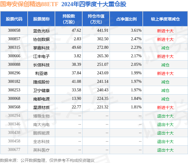 国寿安保创精选88ETF的前十大重仓股如下: