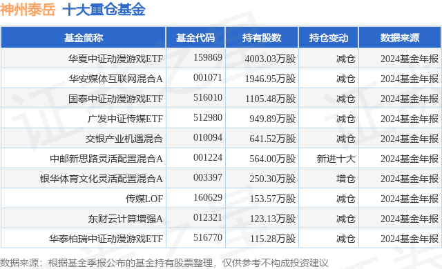 重仓神州泰岳的前十大公募基金请见下表: