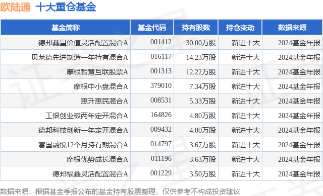 重仓欧陆通的前十大公募基金请见下表:
