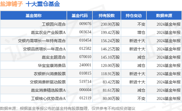 重仓盐津铺子的前十大公募基金请见下表: