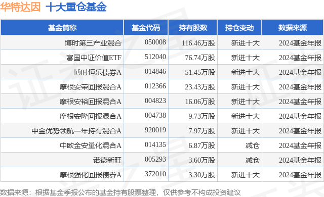 根据2024基金年报公募基金重仓股数据,重仓该股的公募基金共11家,其中持有数量最多的公募基金为博时第三产业混合。博时第三产业混合目前规模为6.57亿元,最新净值0.62(2月24日),较上一交易日下跌0.16%,近一年上涨0.81%。该公募基金现任基金经理为于玥。