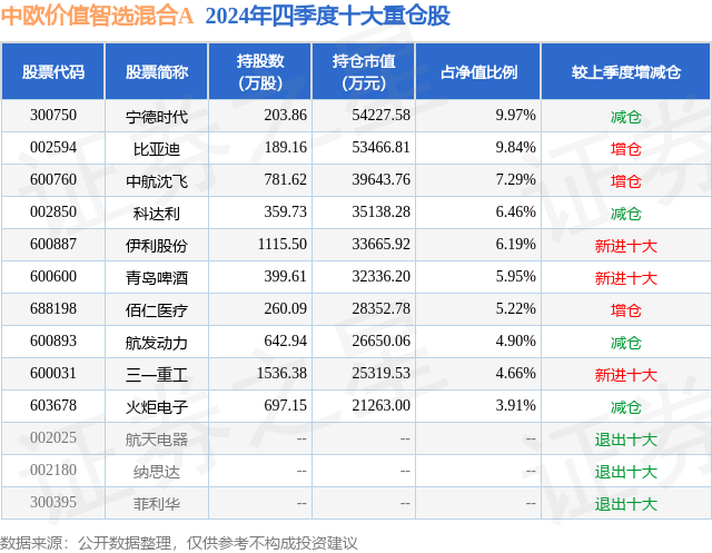 根据2024基金年报公募基金重仓股数据,重仓该股的公募基金共13家,其中持有数量最多的公募基金为中欧价值智选混合A。中欧价值智选混合A目前规模为32.66亿元,最新净值4.0637(2月25日),较上一交易日下跌0.57%,近一年上涨34.52%。该公募基金现任基金经理为袁维德。袁维德在任的基金产品包括:中欧睿泓定开混合,管理时间为2018年3月28日至今,期间收益率为102.93%;中欧新兴价值一年持有混合A,管理时间为2021年9月6日至今,期间收益率为-15.58%;中欧多元价值三年持有混合A,管理时间为2022年1月26日至今,期间收益率为-14.75%。