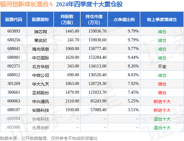 银河创新成长混合A的前十大重仓股如下: