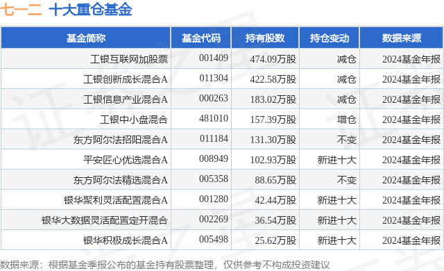 重仓七一二的前十大公募基金请见下表:
