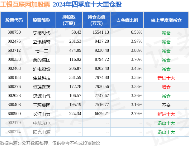 工银互联网加股票的前十大重仓股如下: