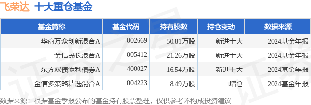 根据2024基金年报公募基金重仓股数据,重仓该股的公募基金共4家,其中持有数量最多的公募基金为华商万众创新混合A。华商万众创新混合A目前规模为7.42亿元,最新净值2.064(2月26日),较上一交易日上涨0.88%,近一年上涨31.21%。该公募基金现任基金经理为童立。童立在任的基金产品包括:华商新锐产业混合,管理时间为2016年12月23日至今,期间收益率为22.39%;华商研究精选灵活配置A,管理时间为2017年12月21日至今,期间收益率为162.88%;华商科技创新混合,管理时间为2020年3月6日至今,期间收益率为57.46%;华商核心引力混合A,管理时间为2021年7月28日至今,期间收益率为-13.85%。
