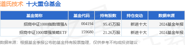 根据2024基金年报公募基金重仓股数据,重仓该股的公募基金共2家,其中持有数量最多的公募基金为招商中证1000指数增强A。招商中证1000指数增强A目前规模为9.75亿元,最新净值1.6951(2月26日),较上一交易日上涨1.26%,近一年上涨28.3%。该公募基金现任基金经理为蔡振。蔡振在任的基金产品包括:招商安阳债券A,管理时间为2021年8月5日至今,期间收益率为23.12%;招商安盈债券A,管理时间为2021年8月5日至今,期间收益率为16.69%;招商安嘉债券,管理时间为2022年9月20日至今,期间收益率为19.51%。