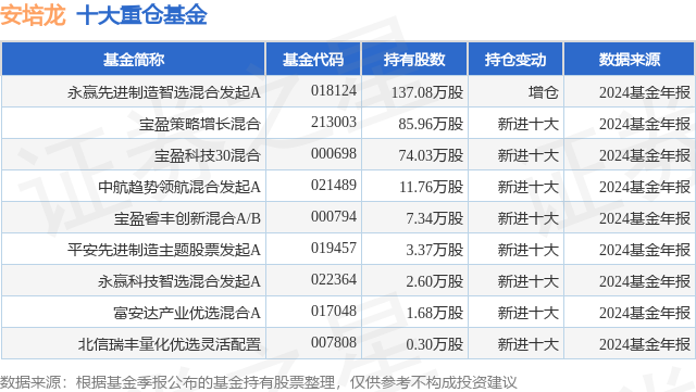 重仓安培龙的公募基金请见下表: