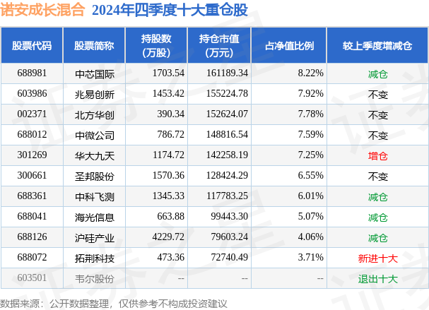 重仓华大九天的前十大公募基金请见下表: