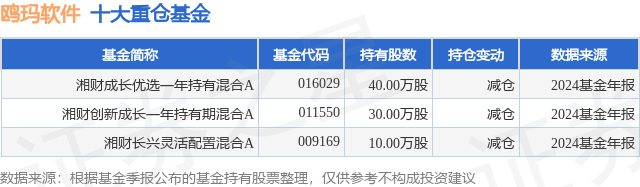 根据2024基金年报公募基金重仓股数据,重仓该股的公募基金共3家,其中持有数量最多的公募基金为湘财成长优选一年持有混合A。湘财成长优选一年持有混合A目前规模为1.11亿元,最新净值1.0439(2月27日),较上一交易日下跌2.3%,近一年上涨35.96%。该公募基金现任基金经理为车广路。车广路在任的基金产品包括:湘财长兴灵活配置混合A,管理时间为2020年4月23日至今,期间收益率为-8.45%;湘财创新成长一年持有期混合A,管理时间为2021年3月24日至今,期间收益率为-31.95%;湘财新能源量化选股混合A,管理时间为2024年9月4日至今,期间收益率为-0.39%。