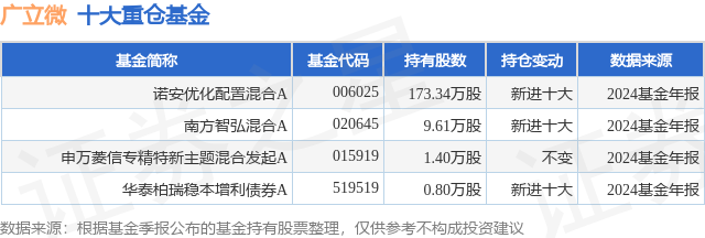 根据2024基金年报公募基金重仓股数据,重仓该股的公募基金共4家,其中持有数量最多的公募基金为诺安优化配置混合A。诺安优化配置混合A目前规模为6.54亿元,最新净值1.9412(2月27日),较上一交易日下跌1.73%,近一年上涨48.69%。该公募基金现任基金经理为刘慧影。刘慧影在任的基金产品包括:诺安成长混合,管理时间为2023年2月18日至今,期间收益率为14.9%;诺安积极回报混合A,管理时间为2023年9月29日至今,期间收益率为31.54%。